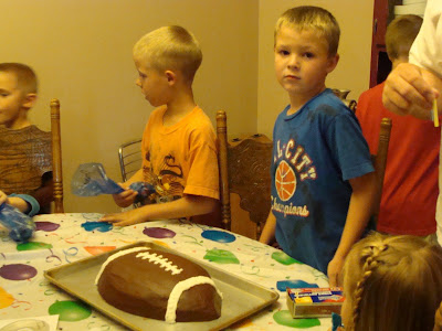 He wanted a football cake. With life being so busy I left Brent in charge of making the cake. Why hasn't he made all the cakes? He did such an awesome job! The boys loved it! Way to go dad you have a new job as the cake decorator.